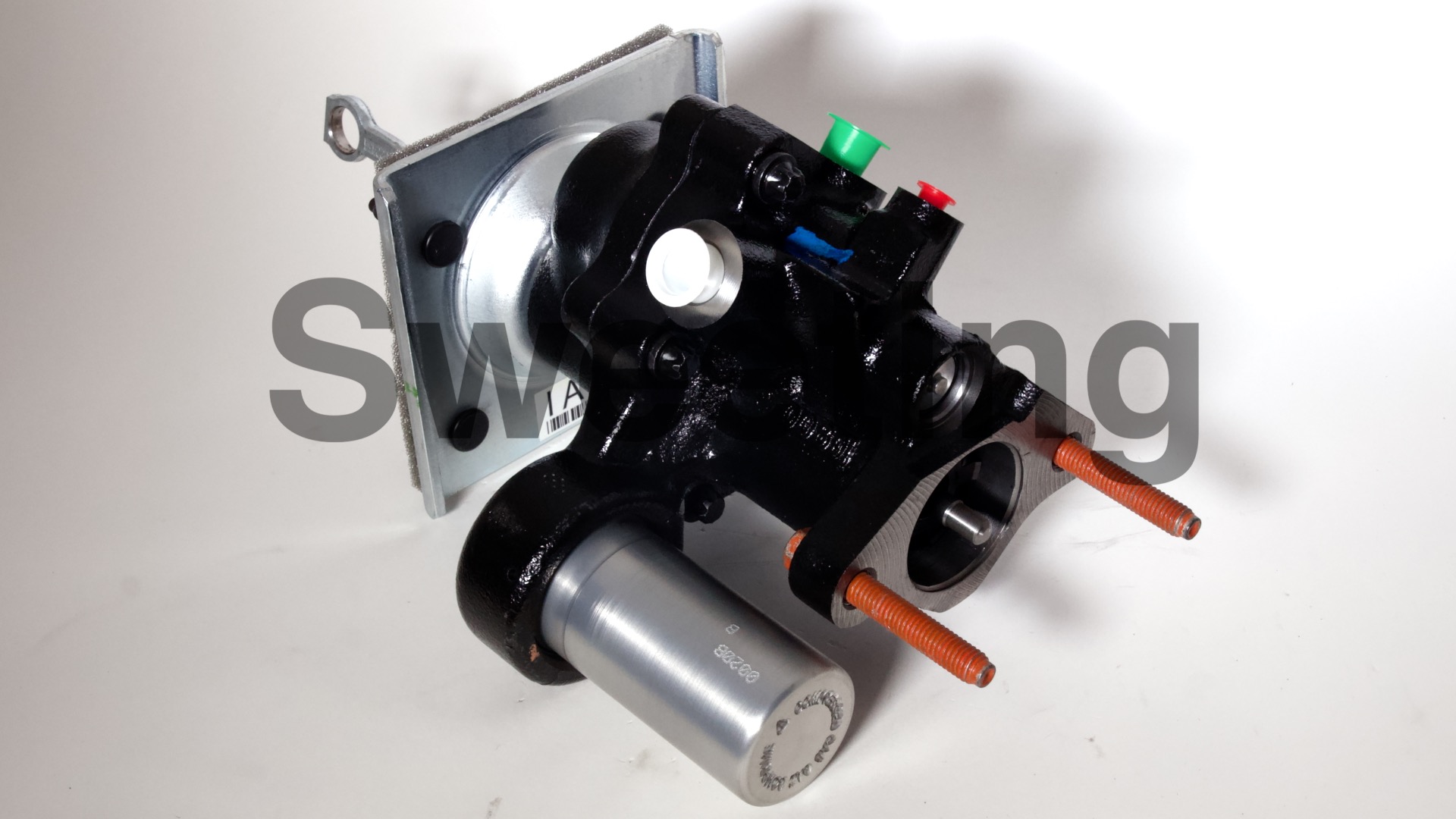 The Hydro-Boost is smaller in diameter than vacuum boosters, being about the dimensions of an iron master cylinder, it mates to the firewall/brake pedal and the master cylinder the same way a vacuum booster does, and it fits anywhere a vacuum booster will, as well as many place a vacuum booster won't. The aluminum canister on the side is the accumulator, which stores pressure in case your engine dies to provide you with some braking and steering assist to help you come to a safe stop.