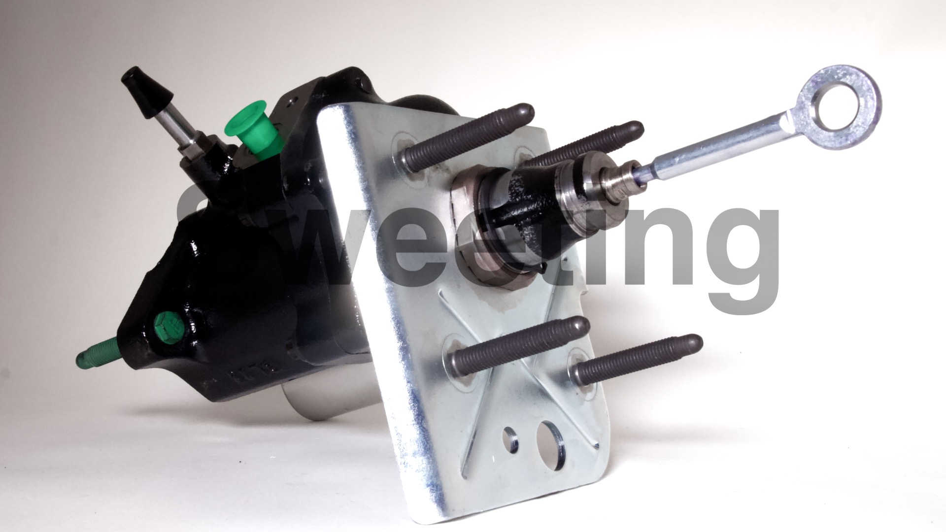 The Hydro-Boost is smaller in diameter than vacuum boosters, being about the dimensions of an iron master cylinder, it mates to the firewall/brake pedal and the master cylinder the same way a vacuum booster does, and it fits anywhere a vacuum booster will, as well as many place a vacuum booster won't. The aluminum canister on the side is the accumulator, which stores pressure in case your engine dies to provide you with some braking and steering assist to help you come to a safe stop.