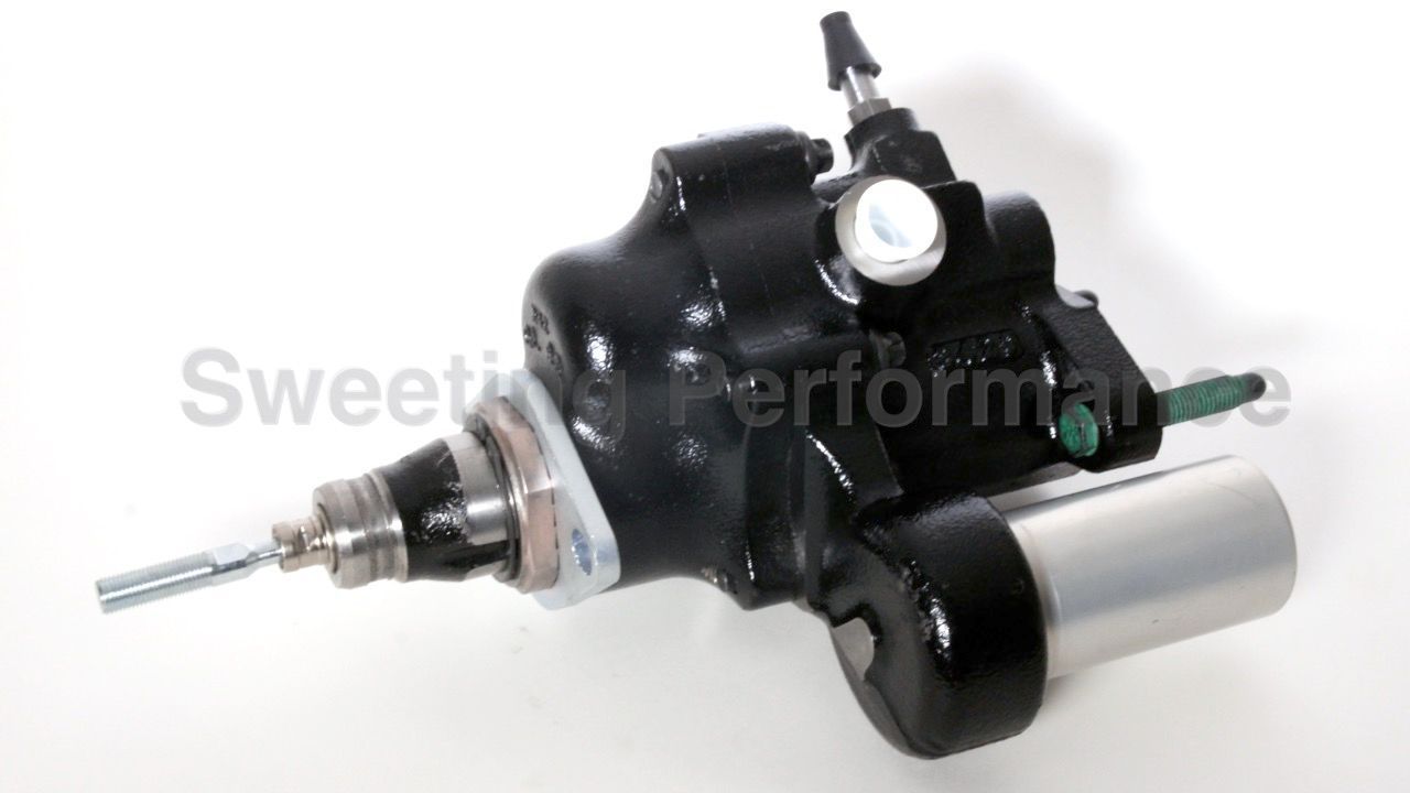 The Hydro-Boost is smaller in diameter than vacuum boosters, being about the dimensions of an iron master cylinder, it mates to the firewall/brake pedal and the master cylinder the same way a vacuum booster does, and it fits anywhere a vacuum booster will, as well as many place a vacuum booster won't. The aluminum canister on the side is the accumulator, which stores pressure in case your engine dies to provide you with some braking and steering assist to help you come to a safe stop.